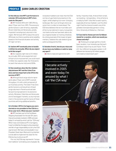 A prominent figure in the maritime sector of the region, Juan Carlos Croston was elected Vice President of the Caribbean Shipping Association at the annual conference in Cartagena in October 2015. Here, he talks to Caribbean Maritime about his career so far – he is vice president, marketing and corporate affairs, with Manzanillo International Terminal (MIT) in Panama – and his hopes and expectations for the industry.