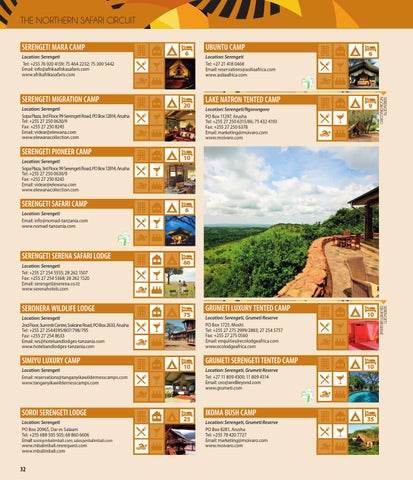 the NORtheRN SAFARI cIRcuIt SERENGETI MARA CAMP Location: Serengeti Tel: +255 76 920 4159; 75 464 2232; 75 300 5442 Email: info@afrikaafrikasafaris.com www.afrikafrikasafaris.com
