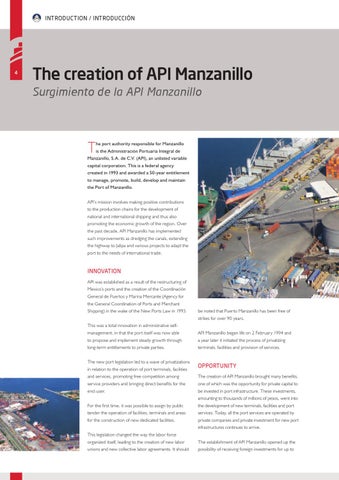 innovation API was established as a result of the restructuring of Mexico’s ports and the creation of the Coordinación General de Puertos y Marina Mercante (Agency for the General Coordination of Ports and Merchant Shipping) in the wake of the New Ports Law in 1993.