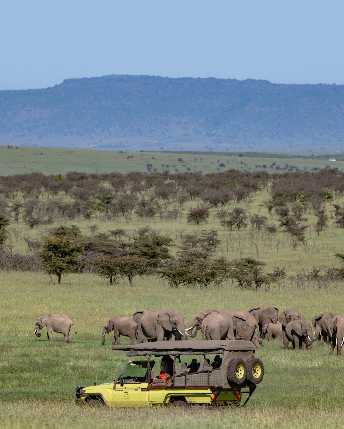 After a thrilling descent and an expert landing at the well-maintained Kalama air strip near the northern border of Samburu National Reserve, I get to soak up the stark but spectacular landscape from ground level. A vast expanse of savannah – with thorny thickets of acacia bushes growing in the ironrich red soil – is framed by rugged mountain peaks.
