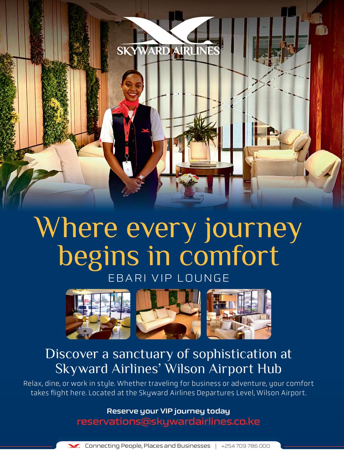 Skyward Airlines is a prominent Kenyan airline‚ established in 2013. Piloted by passionate Kenyans‚ Skyward Airlines prioritises safety and exceptional customer service‚ making us a trusted choice for exploring Kenya. With our main hub at Wilson Airport in Nairobi‚ Skyward Airlines connects major cities and remote destinations across Kenya and into Tanzania‚ playing a vital role in enhancing regional connectivity. Skyward Airlines is recognised for its commitment to reliability‚ affordability‚ and exceptional customer service.