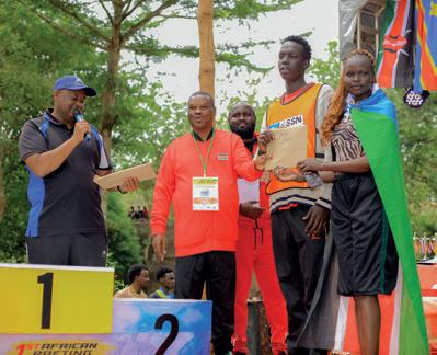 either sports management or sport science courses at local universities so were able to get together to train regularly on the Sagana course in the run-up to the event. Kinuthia says the coaching was inspired by the country’s legacy of dominance in middleand long-distance running.