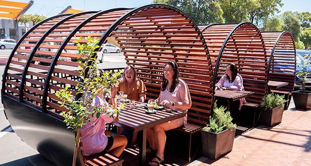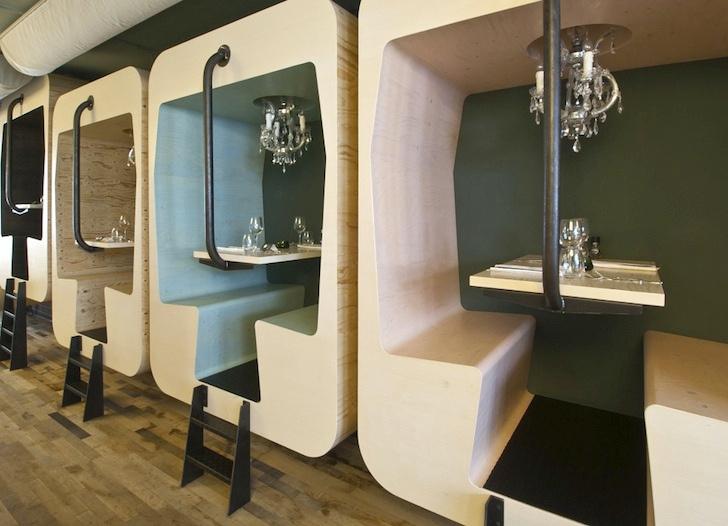 For those who still want that privacy and seclusion that they became accustomed to during the days of seating limits and plastic barriers, restaurants are now using higher back seating to give that extra level of separation. Another emerging trend is dining pods, these give the diner a sense of privacy while still remaining part of the public space Using light materials allows for separation and yet the diner still feels as if they are in their own intimate space