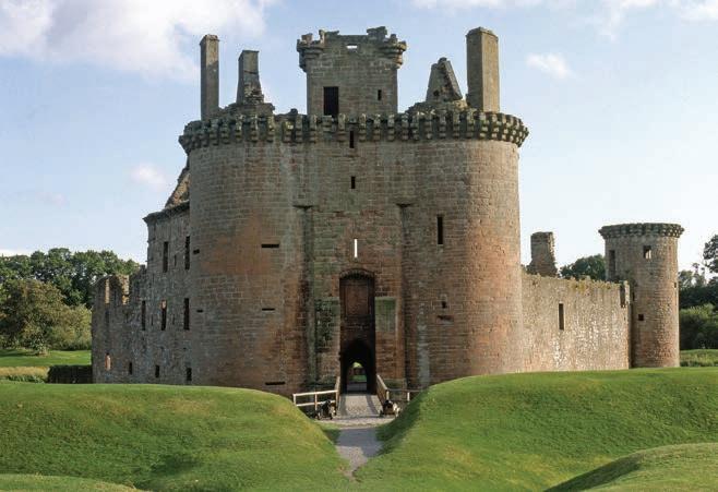There are some superb castles here. The medieval stronghold of Caerlaverock, surrounded by a moat, stood guard over the Solway Firth for more than 400 years. Also protected by water is the enchanting Castle Threave, once a stronghold of Archibald the Grim. It is situated on an island in the middle of the River Dee and is reached by boat.
