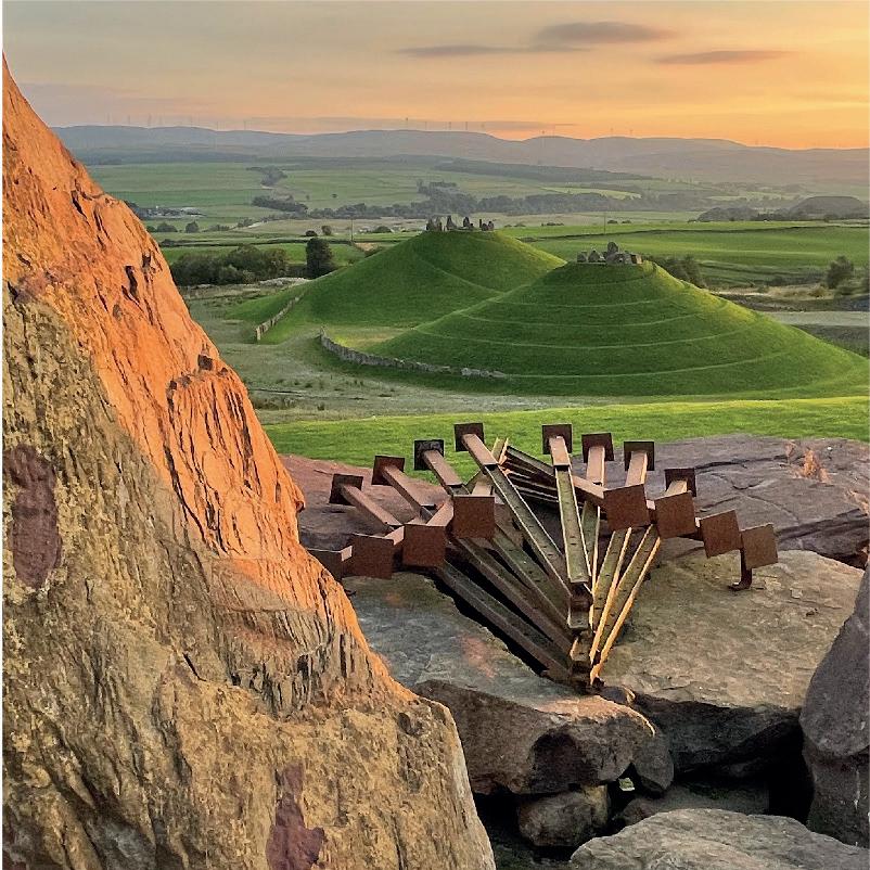 Created by sculptor Richard Price to celebrate Scottish hero William Wallace. Open monument located at Loudon Hill in the heart of the Irvine Valley. KA17 0LY