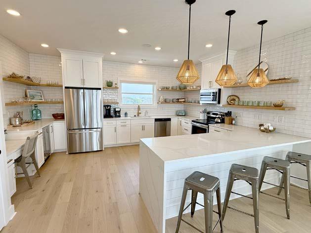 Right in the heart of Wrightsville Beach, this house is a quick walk to the beach, sound, restaurants, bars, parks, shops, and fishing pier. Grab your paddle board, kayak, or fishing pole and walk a few feet down to the end of the street and enjoy calm sound water access. Enjoy the sunset from the fourth floor rooftop patio where you’ll find the finest 360 degree view of the ocean and sound, which is one of the highest points on the island. Not only is Whale House’s location ideal, but the comforts of the accommodations are also sure to satisfy all guests. The kitchen includes a wine and beer refrigerator in the large center island, large sink, Subzero and Wolf appliances, and casual bar seating.