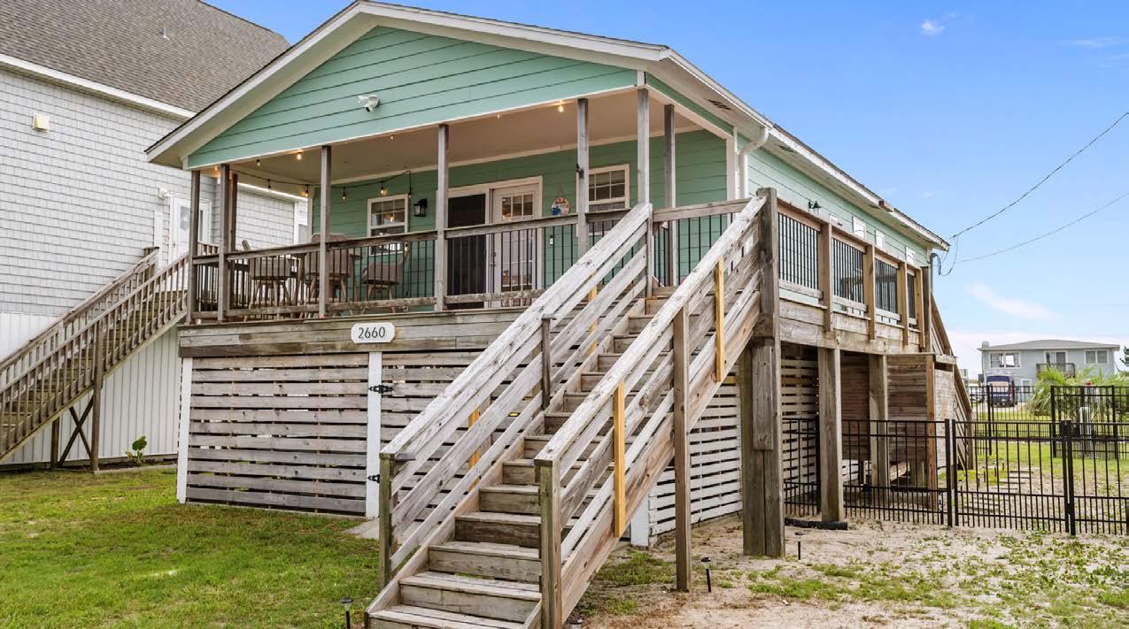 This charming beach house is located just one block from the beautiful shores and public beach access of Surf City! Perfectly situated for both relaxation and adventure, Kokomo Cove is just minutes from Surf City’s local shops, delicious restaurants, bars, mini golf, and more. Whether you’re looking to explore the area or simply kick back and unwind, this beachside getaway has it all. With both ocean and sound views, this home is sure to please, offering three night minimum stays from Memorial Day to Labor Day. . LEARN MORE