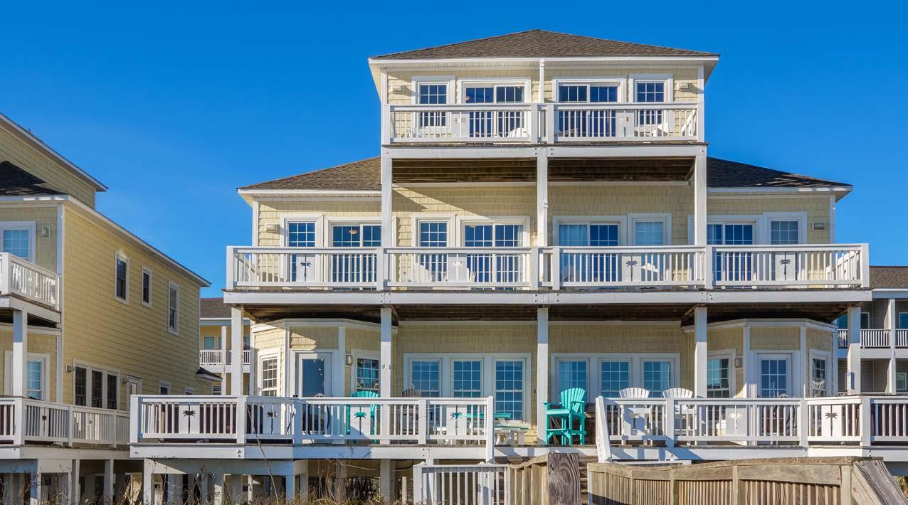 Located in the quiet Hampton Colony neighborhood of North Topsail Beach, this upscale coastal home offers luxury beach living at its finest and is perfect for large families, multi family vacations, and group getaways. This home offers private direct access to the sand, along with indescribable ocean views from nearly every level. Enjoy access to the community pool, a private hot tub, game room, and easy access to North Shore Country Club for those wanting to play a ground of golf on vacation and nearby shopping and restaurants in Snead’s Ferry. LEARN MORE