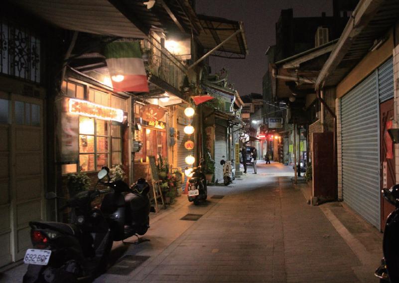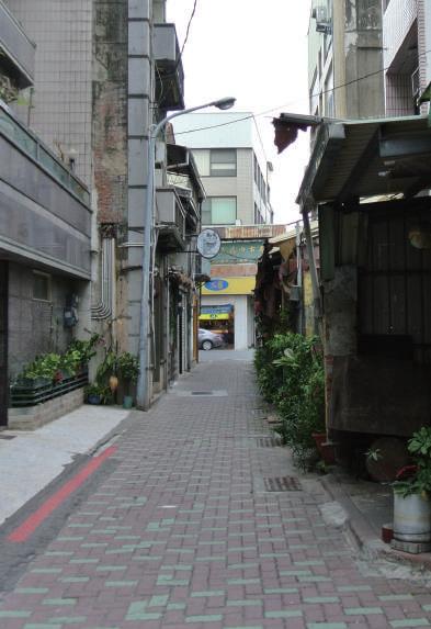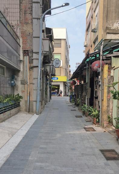 故本計畫順應現地條件,調整細部作法以因應人行及行車需求。 本計畫主通道(新美街)以民族路為界,北為拓寬後的米街,現況依舊是民生 住商聚集,人貨車輛來往;以南則是為廢止計劃道路開闢的抽籤巷,多為參 拜與遊歷步行,仍保有舊時狹窄巷弄輪廓,曲折蜿蜒、交錯互通。