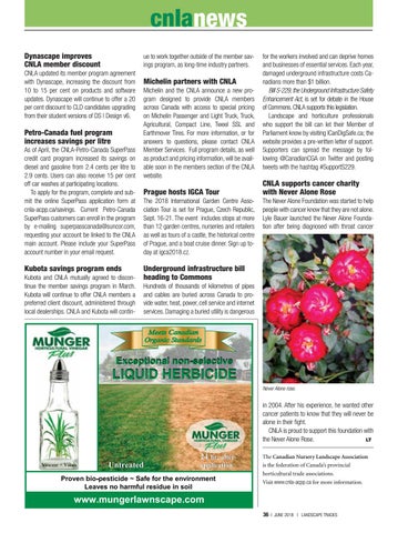 Kubota savings program ends Kubota and CNLA mutually agreed to discontinue the member savings program in March. Kubota will continue to offer CNLA members a preferred client discount, administered through local dealerships. CNLA and Kubota will contin-