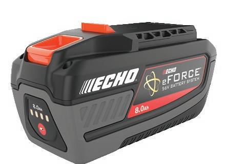 The Echo eFORCE 56V 8.0Ah lithiumion battery is a professional-grade, high-voltage battery featuring triple protection electronics equipped to prevent overcharging, overheating and overloading. It fulfills user’s requirements for greater capacity, enabling extended run times and reducing the necessity for battery replacements and with MAXOUT Technology, ensures all X Series compatible tools run at full power until the charge is fully drained.