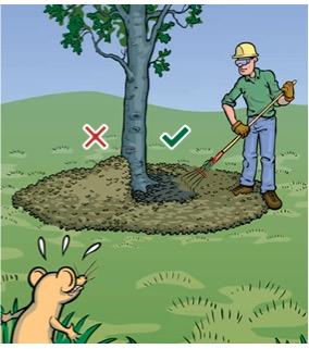 • Avoid piling soil or mulch against the trunk to prevent root collar burial.