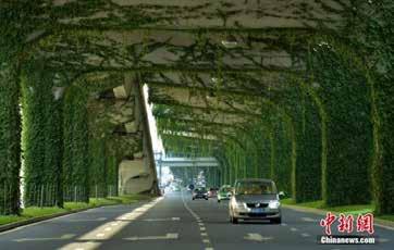 Chengdu, known as a Park City, integrates nature into urban development, aiming to place residents within nature. One great example is how their highway undersides and pillars are covered in vines.