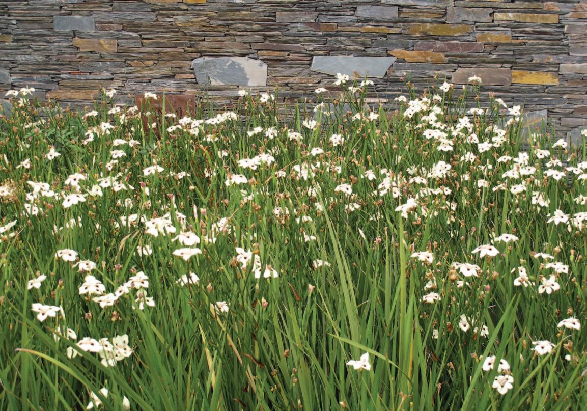 filled, so the general soil conditions were not ideal. As for the irrigation plan, the project was designed to be very low-maintenance. In this regard, few plants compare to ornamental grasses: with their high drought tolerance and ability to thrive in a wide range of conditions, along with nearly nonstop performance and visual impact, these tough and eye-catching plants proved to be perfect for the site.