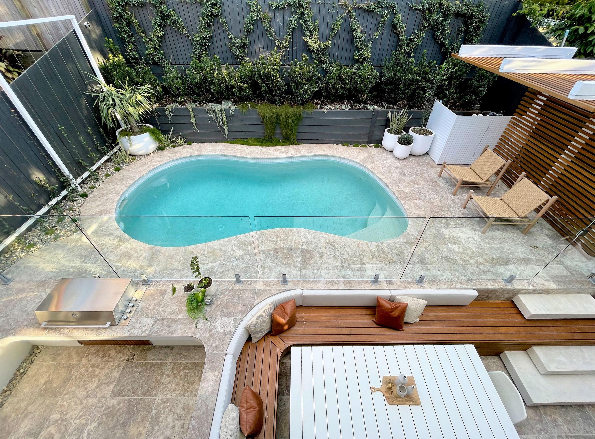 "This pool area, timber work and soft landscaping is a great example of the saying 'good things come in small packages'. Faced with a sloping site and drainage challenges, the result is a lovely, modestly proportioned, and detailed landscape that is a testament to the logistical and construction skills of the contractor. This is a space that is sure to be enjoyed for years to come."