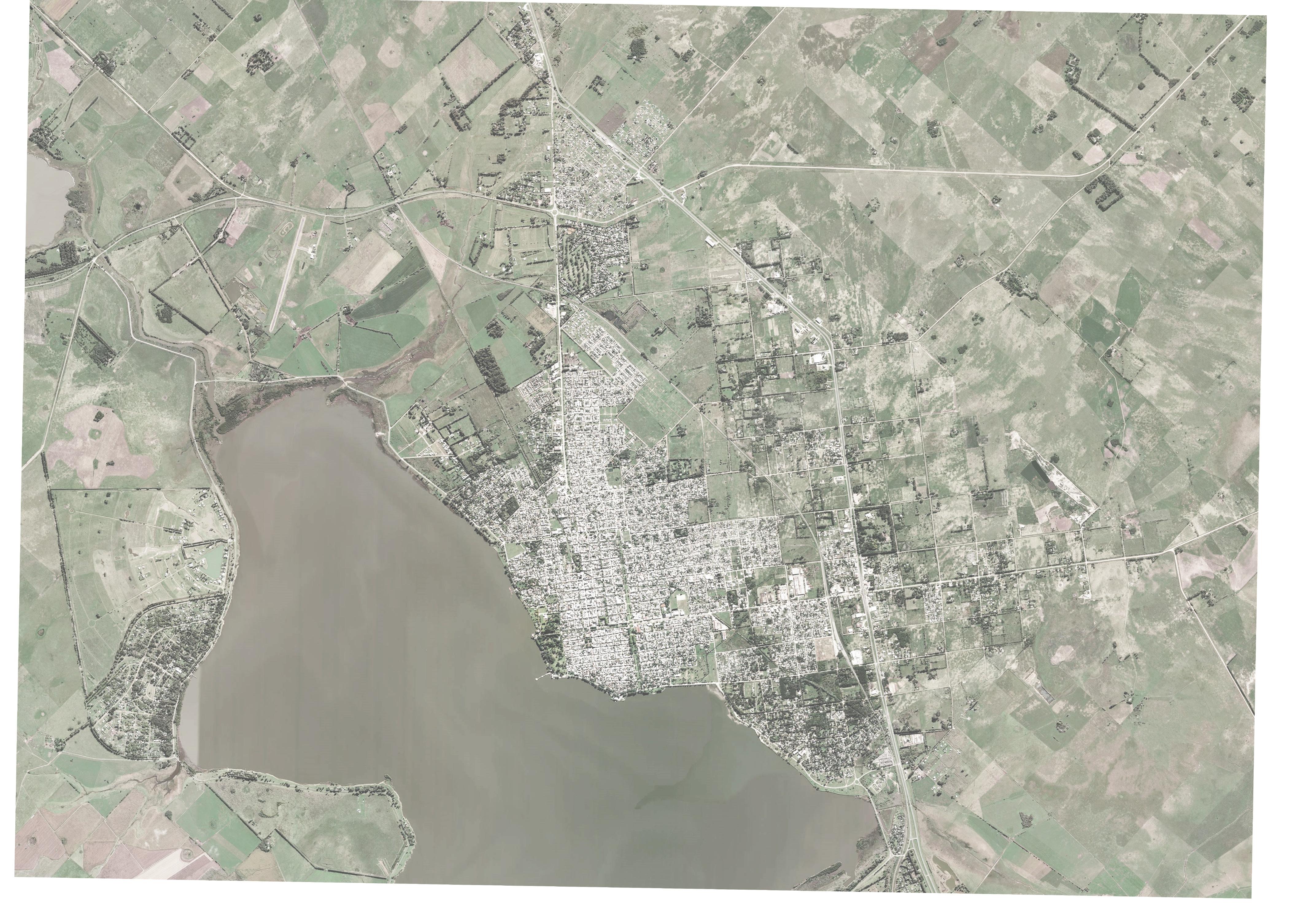 La franja consolidada determinada por la matriz natural donde la ciudad fundacional se emplaza sobre el márgen este de la laguna generando una mancha homogénea.