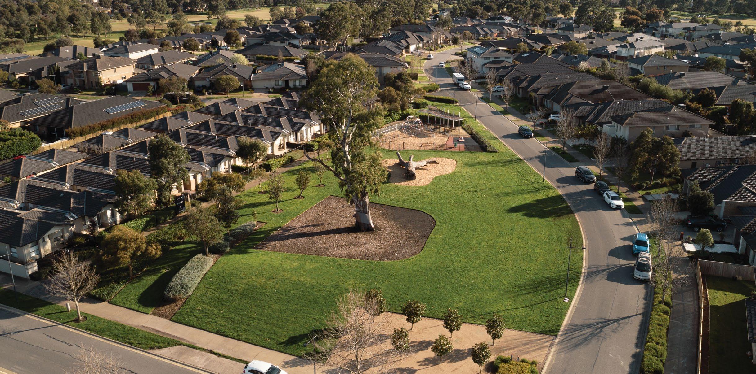 A great amount of thought has gone into the protection of remnant vegetation on the site, existing soils were used and the road network of the estate functioning as a catchment for passive irrigation via swales, demonstrates sustainable best practice.