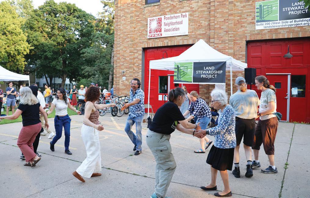 During the summer of 2025, the Land Stewardship Project organized a handful of events around Minnesota to bring together folks around food, music, and camaraderie. In June, LSP kicked off the season with a “Boots and Roots” event (bottom photo) at Dream Acres near Spring Valley in southeastern Minnesota. In July, LSP held its 2025 Twin Cities Cookout & Potluck (right photo) in the side yard of our Minneapolis office. This event featured a potluck, square dancing, line dancing, Bachata lessons and, of course, LSP’s famous pie raffle.