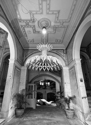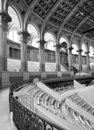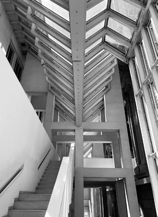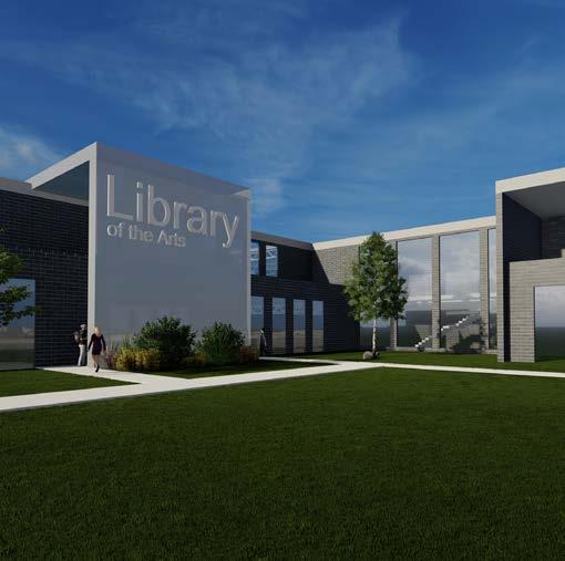 An important design feature of the Library of the Arts is an open atrium connecting the basement floor to the second floor. This design feature serves as a connector between each level of the library while also providing a communal space for artists in the building to interact.