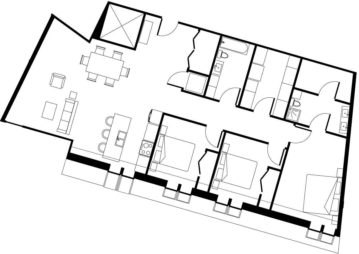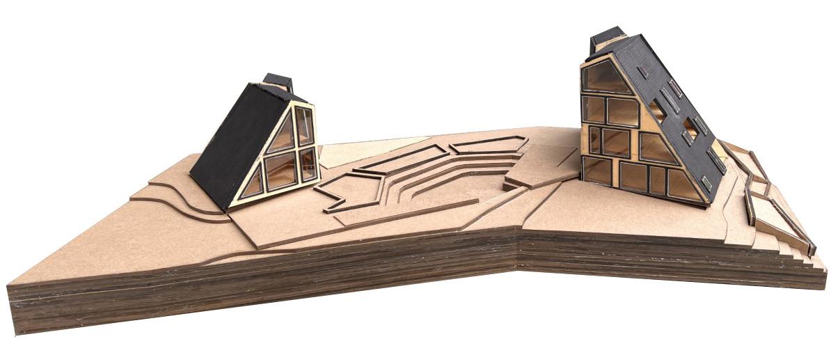 The A-frame apartments are situated in Steamboat Springs and provide an affordable living option for locals with a view of the mountains. The housing project comprises multi-family buildings that have been adapted from a traditional single-family A-frame dwelling. The A-frame’s traditional geometry has been maintained while modernizing it by straightening one wall and adjusting the top angle.