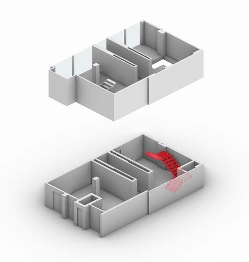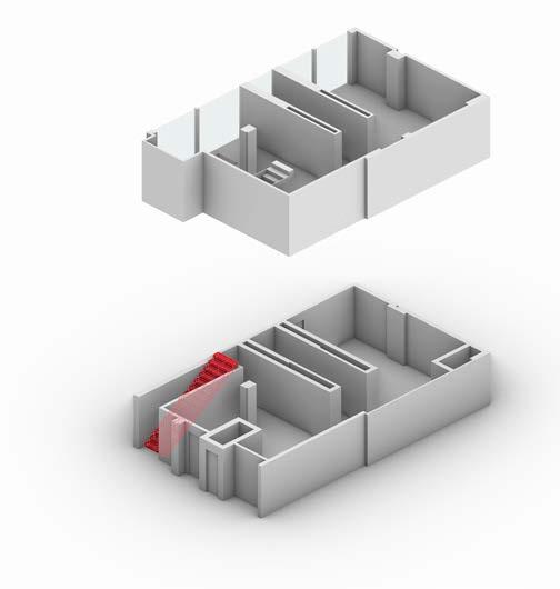 Another project I worked on during this internship was a stair study. I referenced the IBC to gather dimensions and repositioned the stairs to best fit the new requirements. This project involved extensive use of Rhino3D for modeling and Illustrator for creating floor plans. This method of illustration allowed for clear presentations, making it easy to gather feedback from clients.