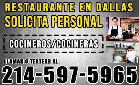 RESTAURANTE EN DALLAS SOLICITA meserxs bilingüe, cocineros y lava trastes. Llama al 214-597-5965