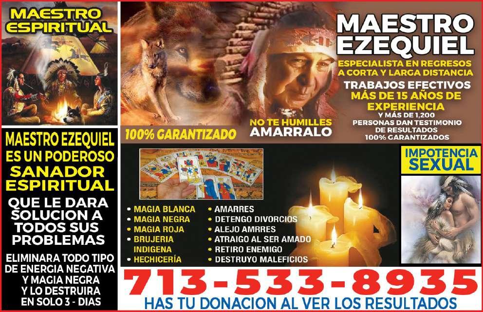 MAESTRO EZEQUIEL ES UN PODEROSO SANADOR ESPIRITUAL Que le dará solución a todos sus problemas. Llama 408-338-0692