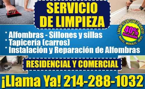 SE LAVA, REPARA e INSTALA ALFOMBRAS. Residencial y comercial. Llame ya 214-288-1032