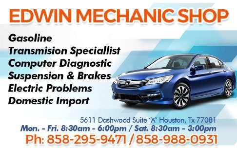 SERVICIO DE MECÁNICA LIGERA EN GENERAL, scanner, diagnóstico y más. Llame al 346-370-4260
