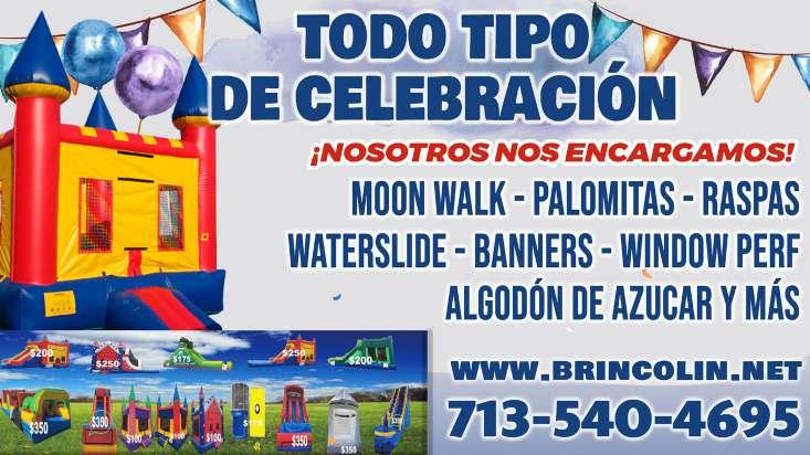 TODO TIPO DE CELEBRACIONES, Moonwalk, letreros personalizados y más. Llame al 713-540-4695