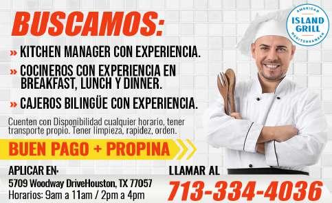 RESTAURANTE EN DALLAS SOCLITA meserxs bilingüe, cocineros y lava trastes. Llamar al 214-597-5965