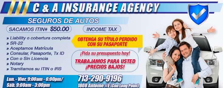 C&I MEZONES INSURANCE ANGENCY INC, seguros de vida, auto, sr-22, comercial y personal, tranferecnia de tìtulo y más. Llama al 281-272-2755 / 713-649-2335 / 281-403-9490