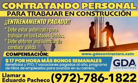 ESTAMOS CONTRATANDO: choferes con licencia de Texas y Trabajadores para barrer tiendas comerciales. Interesados aplicar al 821-487-0606