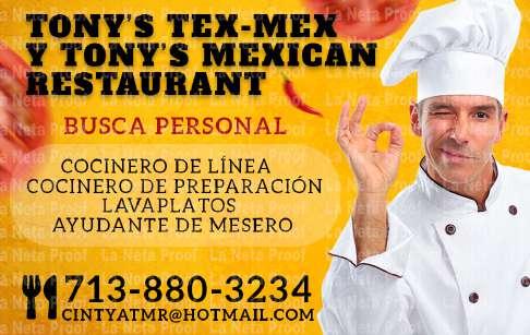 SE BUSCA cocineros - lavaplaatosmeseras. Llámenos al 469-618-1797