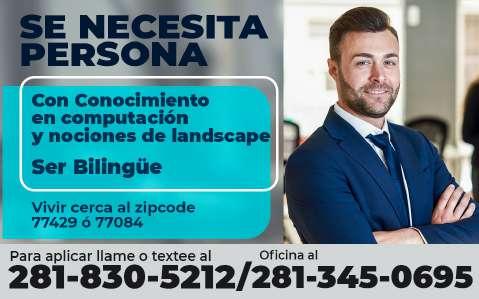 NOW HIRING! landscaping profesional y asistente administrativo Aplicar al www.kjblandscapingllc. com o al 346-719-9663
