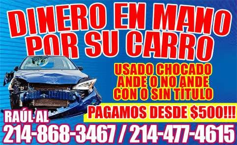 DINERO EN MANO POR SU CARRO, usado o chocado, ande o no, con o sin título. Llame a Raul 214-868-3467