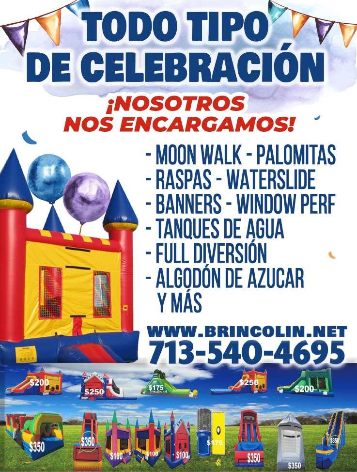 TODO TIPO DE CELEBRACIONES, Moonwalk, palomitas, letreros personalizados y más. Llame al 713540-4695