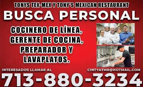 RESTAURANTE EN DALLAS SOCLITA meserxs bilingüe , cocineros y lava trastes. Llamar al 214-597-5965