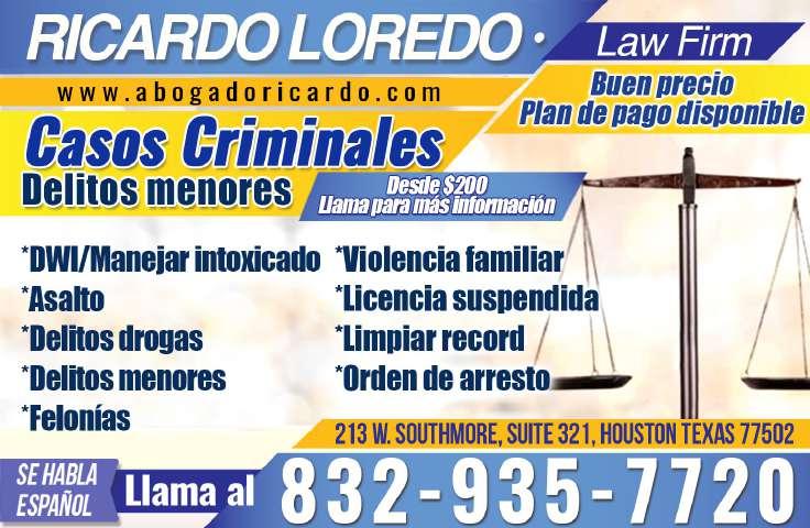 ABOGADO LÁZARO IZAGUIRRE te ayuda con delitos menores, casos criminales, licencias suspendida, DWI, robo, asaltos, felonias. 713-256-3973