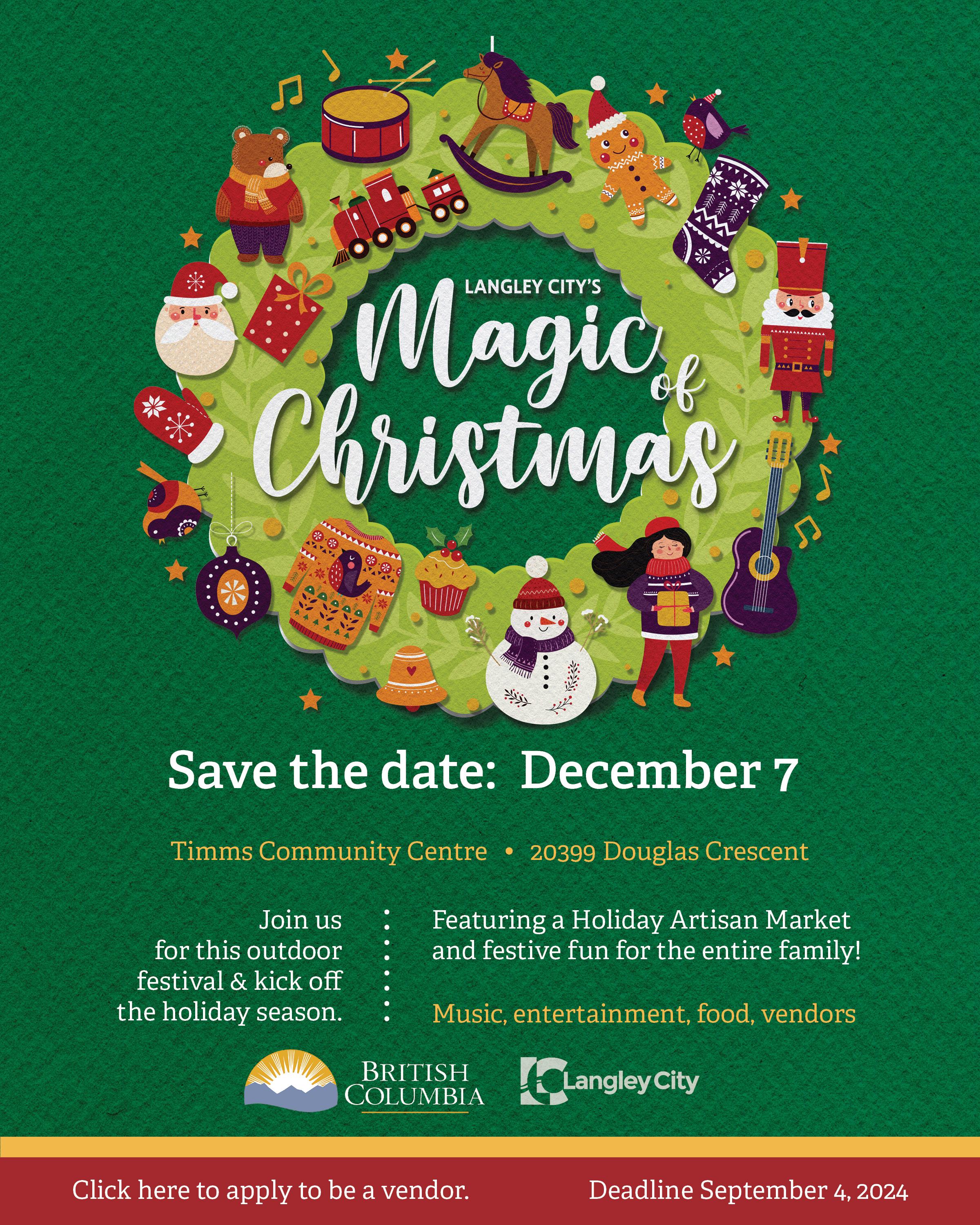 Submit your Application to be a Vendor at the Holiday Artisan Market at TIMMS Community Center: langleyarts.ca/submit/holidaymarket-2024