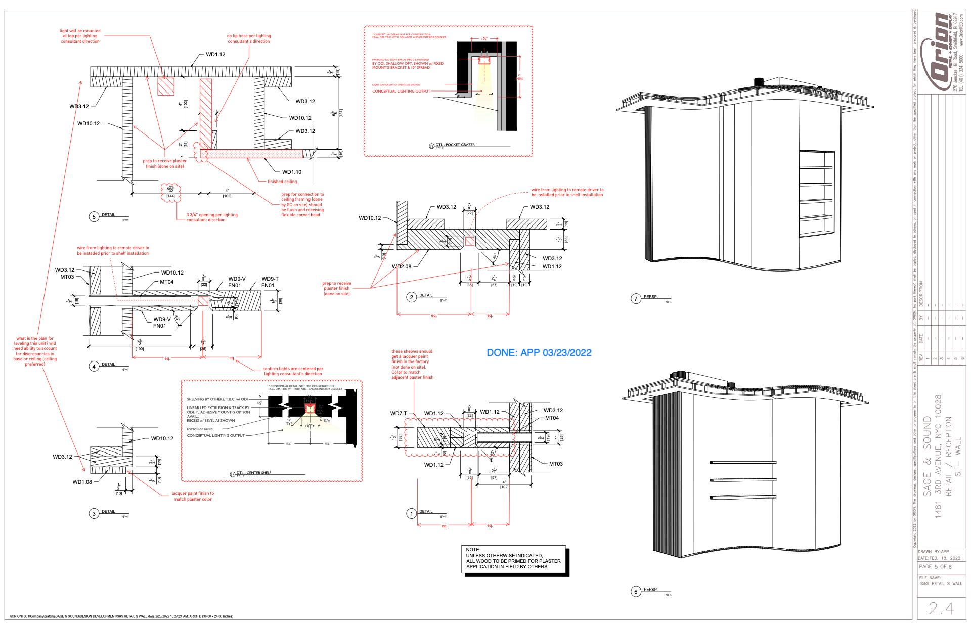 Review millwork shop drawings and comment on lighting detail integration