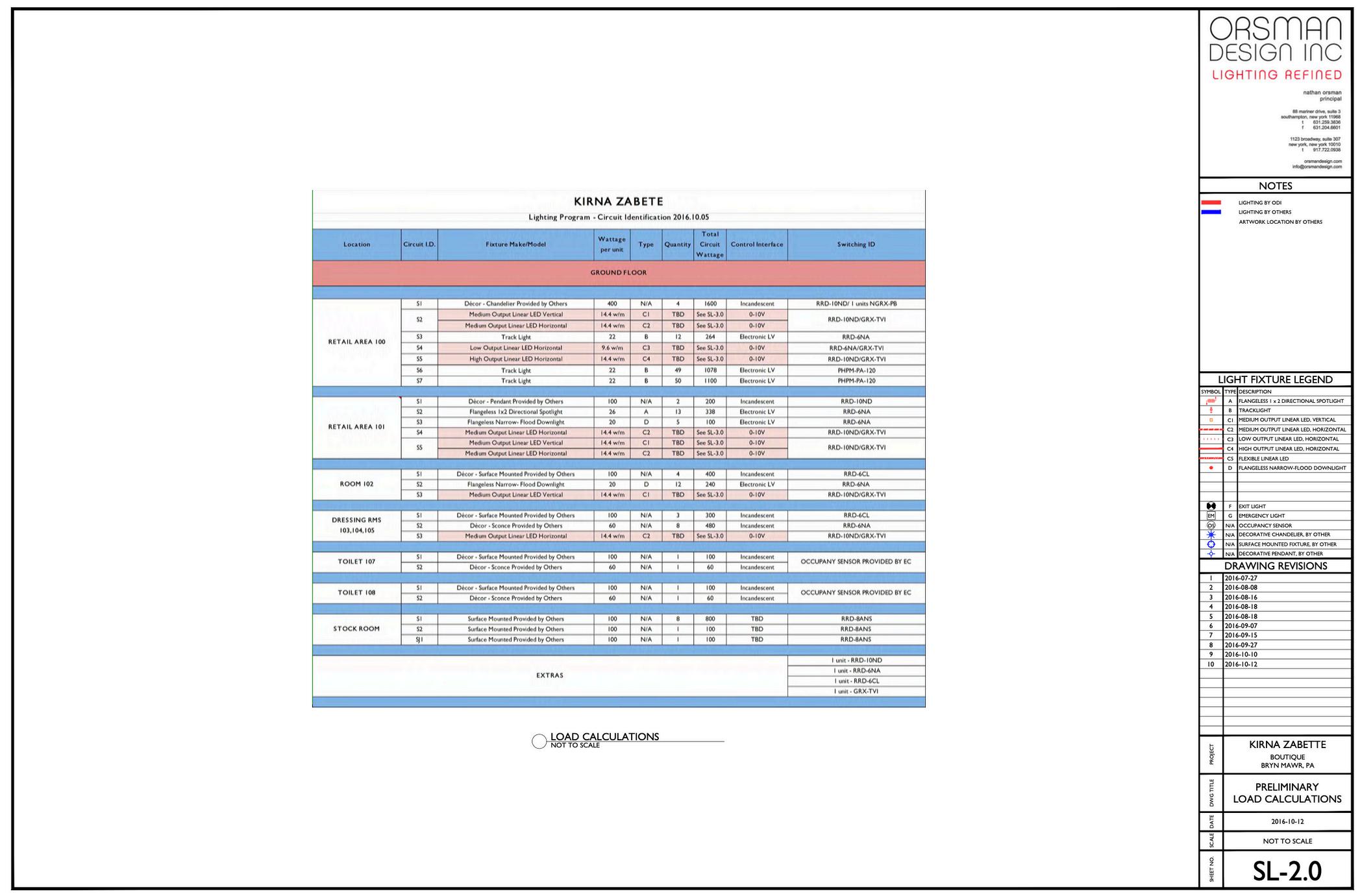 Switch ID (per switching plan) correlated to fixture type and wattage information