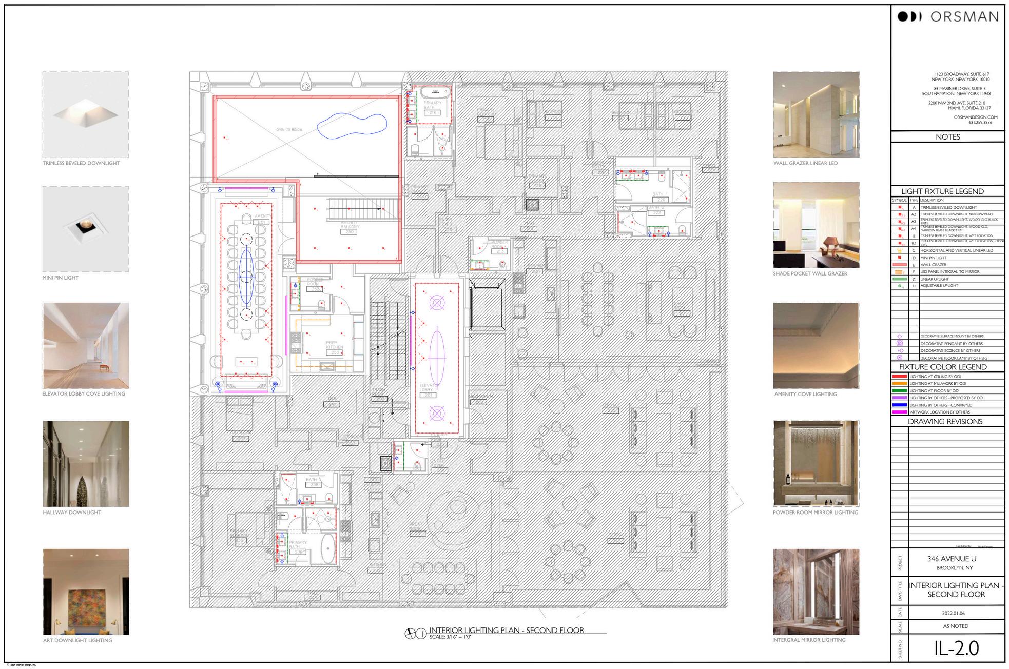 Includes lighting details for architect to integrate our design into plan