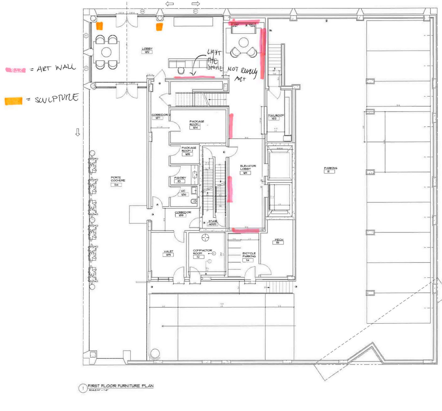 Mark up first pass of design for presentation to principal