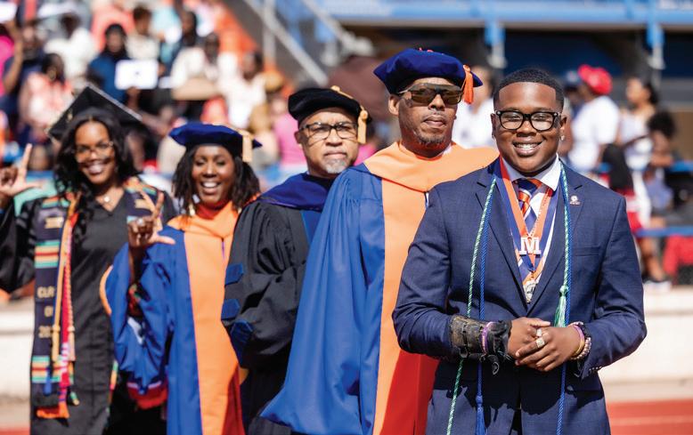 Cheering, dancing, noisemakers and more could be heard from all over campus as the hundreds of friends and families packed the stand to celebrate their graduates, nearly 70% of whom are the first in their families to earn a college degree. J’Taelii Heath was one of these firstgeneration students.