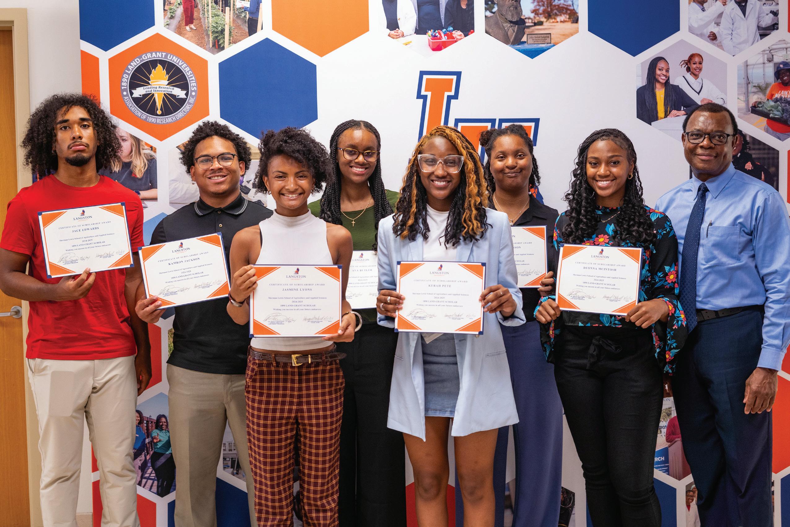 The LU 1890 Land-Grant Scholarships were secured in the 2018 Farm Bill and have been awarded annually since 2022. Scholarship recipients receive renewable awards at two levels: $10,000 and $5,000 each year for the term of the scholarship. The scholarship is reserved for first-time college students , continuing LU students and transfer students from community colleges. The program supports the recruitment, retention, and academic success of undergraduate students, leading to an increased number of graduates with bachelor’s degrees in food, agricultural sciences, and related fields that lead to a highly skilled food and agricultural systems workforce. Funded by the United States Department of Agriculture (USDA) through the National Institute of Food and Agriculture (NIFA), these scholarships aim to encourage exceptional students to pursue and complete their degrees in these areas.