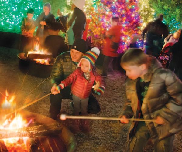 Imagine a 45- to 60-minute stroll through romantic luminarialined pathways surrounded by colorful uplit trees. Look for tall metal lanterns that cast intricate shadows on meandering walkways. Take pics in a tunnel of light, roast s’mores on the event lawn and more.