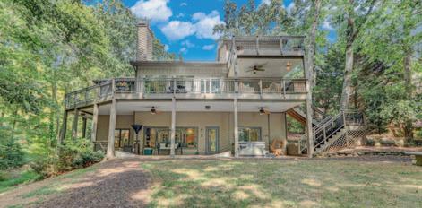 South lake contemporary gem! Super-unique, multilevel home w/panoramic, breathtaking views of Lake Lanier. Great outdoor spaces. The single slip dock,