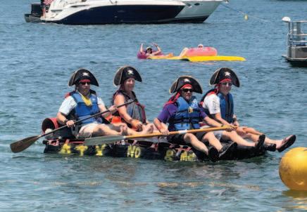 UYC staff members raced boats. Adding to the fun and shenanigans of the race was an appearance of a pirate raft constructed and crewed by B Dock.”
