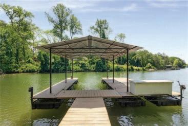 Nicely renovated lakefront home with a gentle path to the lake, seasonal view from kitchen and wrap-around deck, covered single slip dock on good water and move-inready. All on one level. Positioned sideways on the lot, the front door is on the left. A rocking chair front porch, large family room with vaulted ceiling, hardwood floors and a cozy fireplace that is open to the dining area, and updated kitchen. Large pantry and laundry room off the kitchen. 3 bedrooms, 2 baths. New sunroom with many windows. Large deck with an inviting fire pit. Some of the newer features include the roof, paint, smooth ceilings, driveway, trim, landscaping & more! Close to GA400 as well as all the restaurants/shopping/theaters/wineries in Dawsonville & Dahlonega. $550K